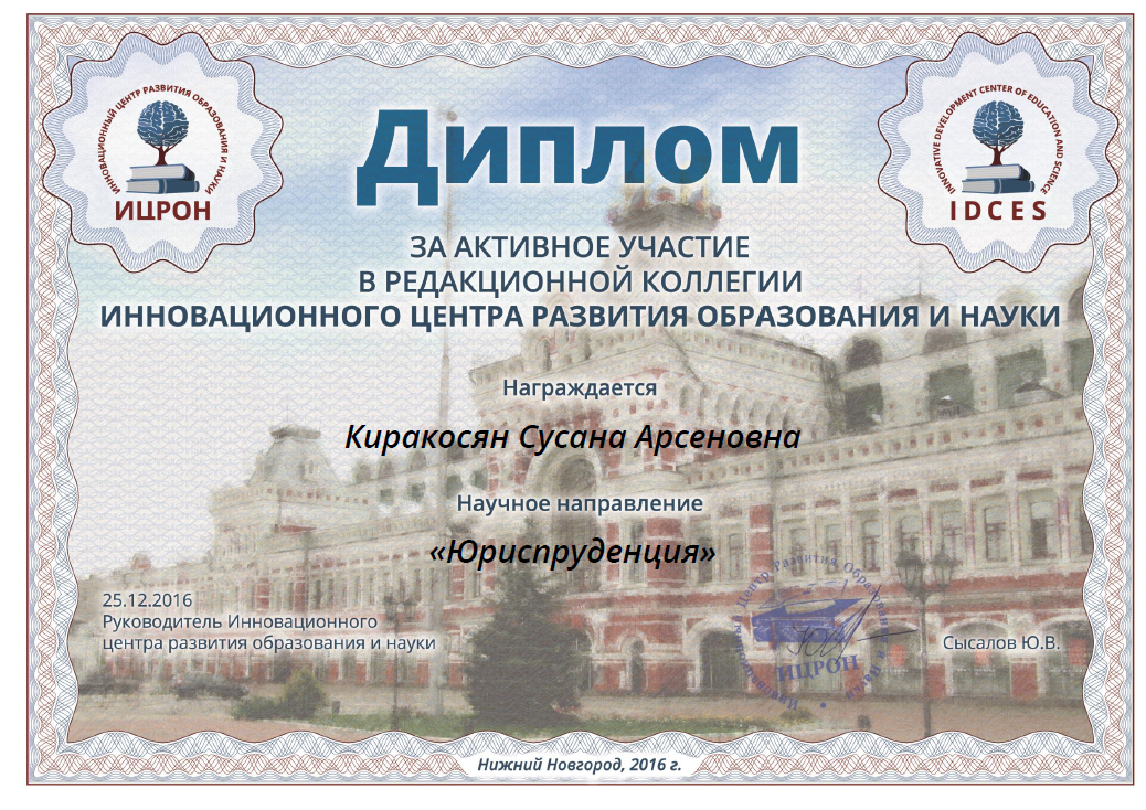 кандидата юридических наук, доцента кафедры гуманитарных дисциплин